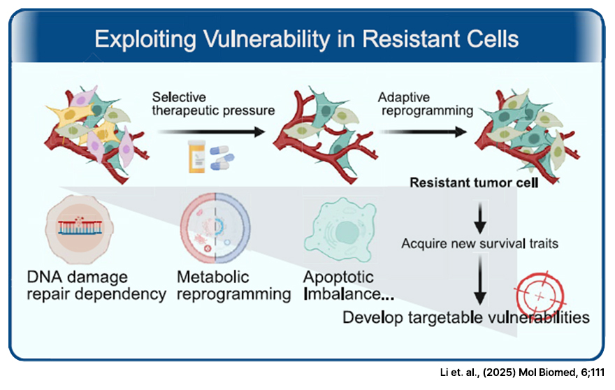 Drug resistance is the result of evolutionary selection. Drug-resistant cancer cells survive through activation of compensatory pathways or phenotypic changes, but these adaptations can also create new dependencies that offer therapeutic opportunities. This is known as cancer vulnerability, meaning that the adaptive traits of cancer cells can become critical weaknesses—leading to cancer-specific susceptibilities in DNA repair, metabolic reprogramming, lineage plasticity, and more.